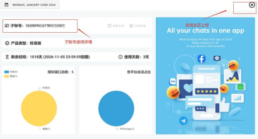 其他功能:为多社交平台的SCRM聚合聊天平台,支持:全球语言翻译、粉丝统计、快捷话术、分流链接、联系人重复标记、汉化专业版、自动更新、智能补录联系人、缓存登录、软件多开等功能。