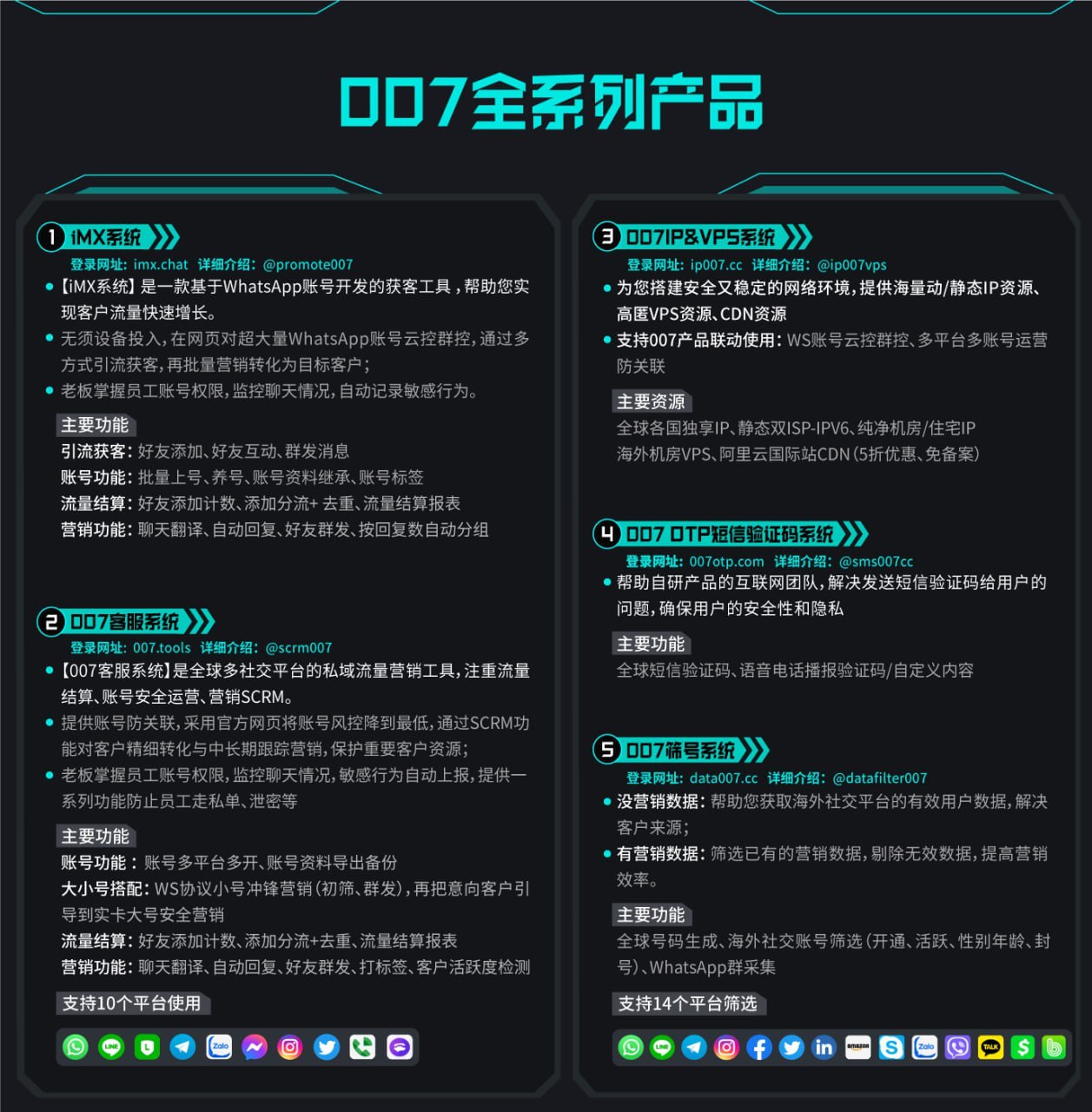 2、007出海不提供账号交易、ws群发、广告代发、买卖数据、支付担保、代收代付等服务,任何以007名义提供以上服务的均为骗子!