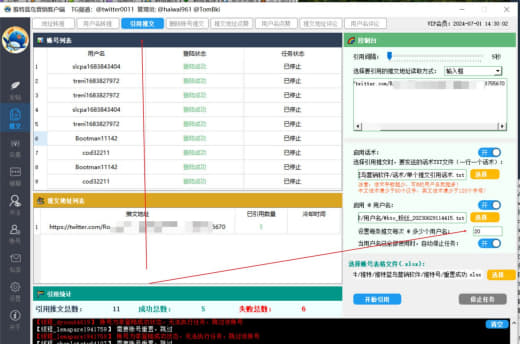 6.24小时不间断发帖, 一键引用转发推文可上热门【被动精准引流】